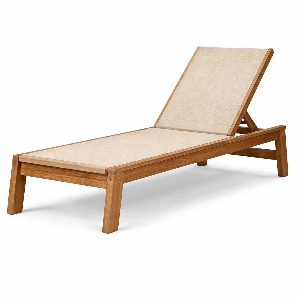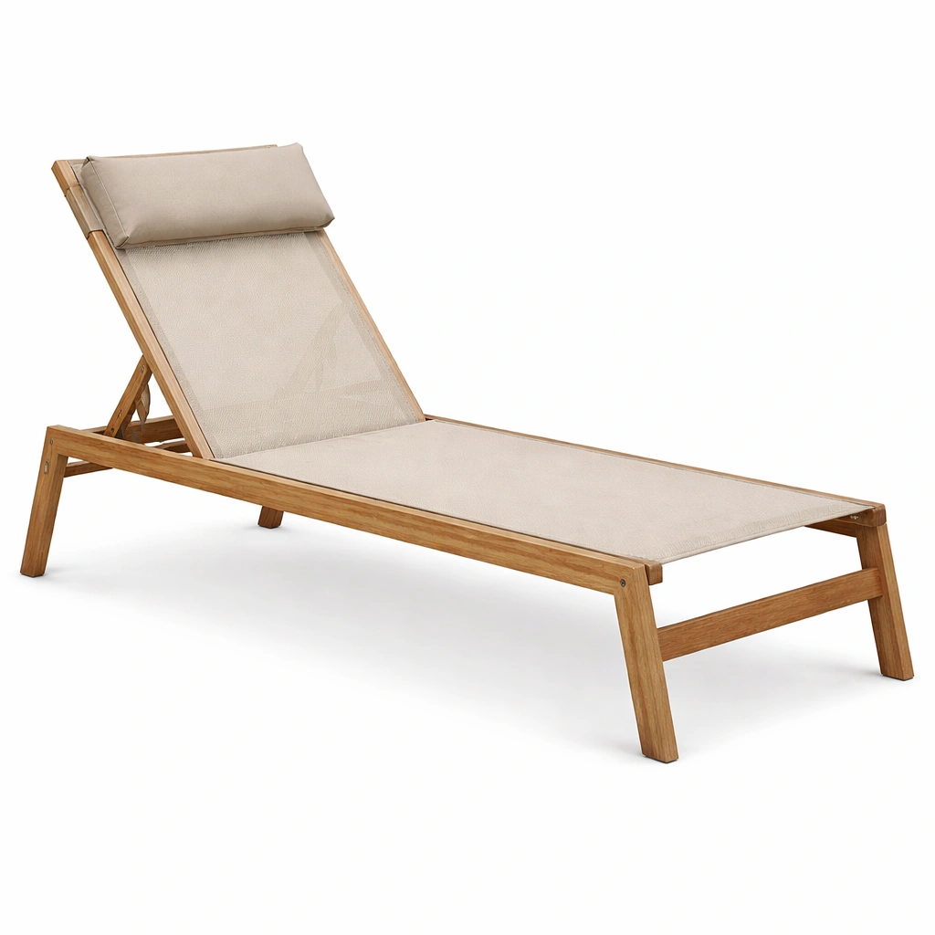 Tumbona de madera de teca con textilene beige